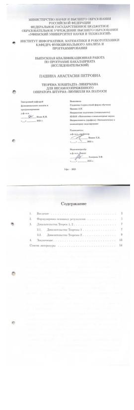 Пашина, Анастасия Петровна. Теорема Хохштадта-Либермана для несамосопряженного оператора Штурма-Лиувилля на полуоси: выпускная квалификационная работа по программе бакалавриата. Направление подготовки (специальность): 02.03.01 "Математика и компьютерные науки". Направленность (профиль): "Математическое и компьютерное моделирование " / А.П. Пашина; Уфимский университет науки и технологий (УУНиТ), Институт информатики, математики и робототехники, Кафедра функционального анализа и программирования ; научный руководитель Х. К. Ишкин; нормоконтроль : Э.Ф. Ахмерова. — Уфа, 2025. — 10 с. — <URL:https://elib.bashedu.ru/dl/diplom/2025/Pashina_A_P_MKN-4MKM211B_020301_MKN_06.2025.pdf>. — Текст: электронный