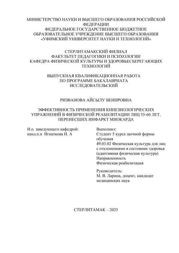 физическая культура). Программа: Физическая реабилитация / А. Р. Кутлубаева; Уфимский университет науки и технологий, Стерлитамакский филиал, Факультет педагогики и психологии, Кафедра физической культуры и здоровьесберегающих технологий, научный руководитель М. В. Ларина. — Стерлитамак, 2026. — 61 с. — <URL:https://elib.bashedu.ru/dl/diplom/SF/2026/FPIP/KutlubaevaAR_49_03_02_ZSAFK52_bak_2026_VKR.pdf>. — текст: электронный