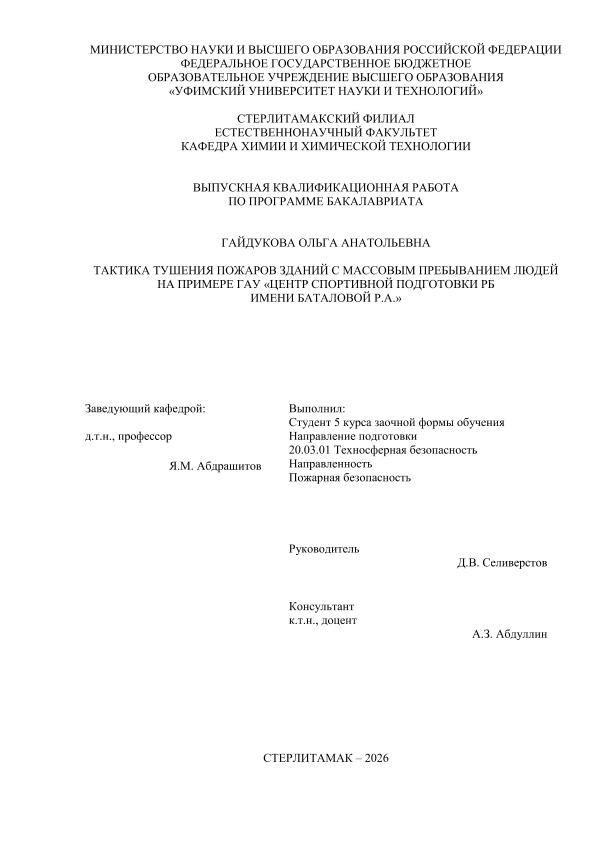 Пожарная безопасность; бакалавриат; ВКР