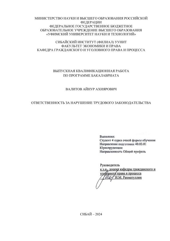 Юриспруденция; бакалавриат; ВКР; нарушение; законодательства; ответственность