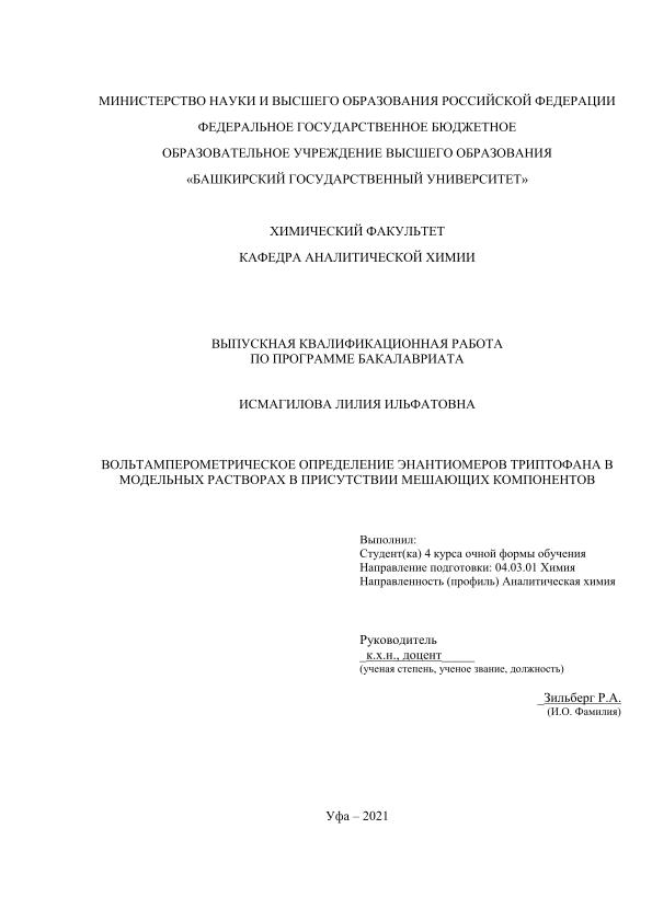 Химия — Химия высокомолекулярных соединений; ВКР; бакалавриат; распознования энантиомеров; энантиоселективные сенсоры; стеклоуглеродный электрод; лекарственные формы