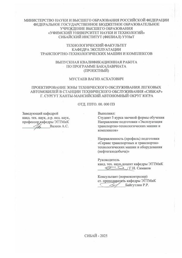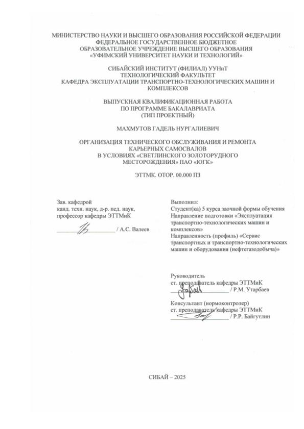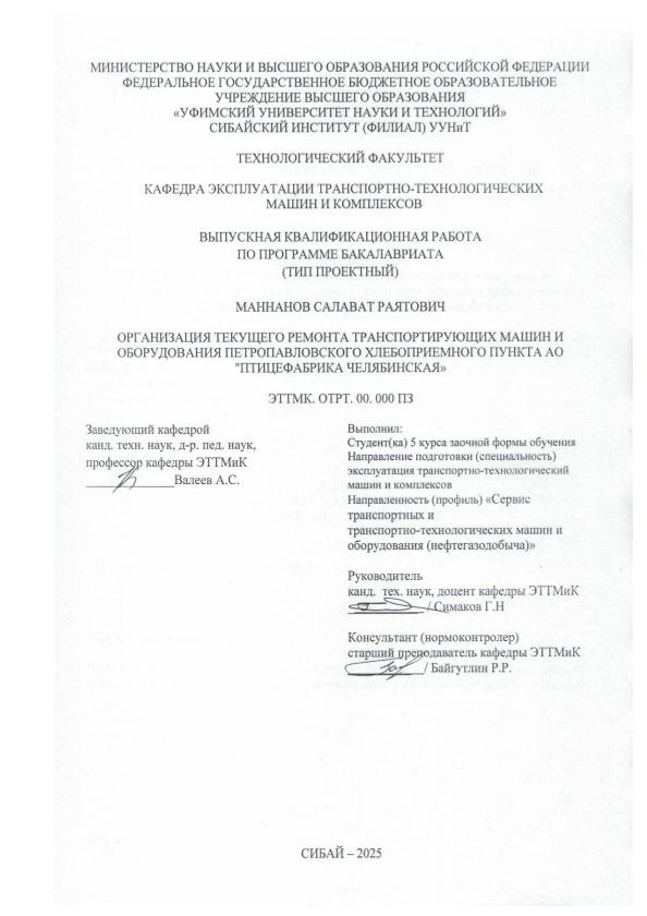 Эксплуатация транспортно-технологических машин и комплексов; бакалавриат; ВКР; ремонт; обслуживания; организация