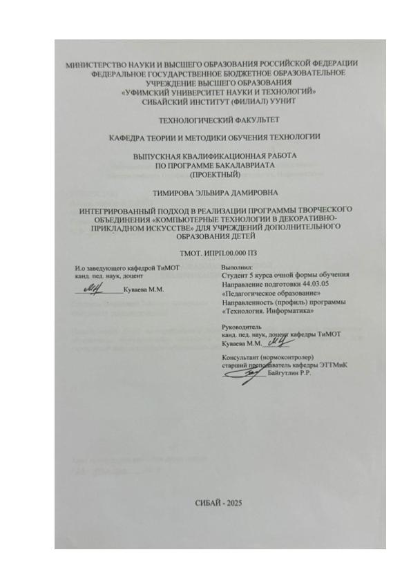 Технология. Информатика; бакалавриат; ВКР; подход; реализация; компьютер