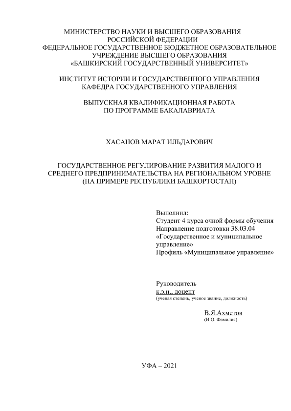 Экономика — Управление экономикой; ВКР; бакалавриат; малое предпринимательство; среднее предпринимательство; государственное регулирование; государственные программы; регионы