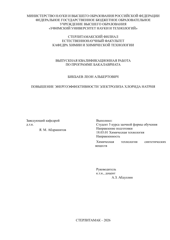 Химическая технология; бакалавриат; ВКР; хлорид натрия