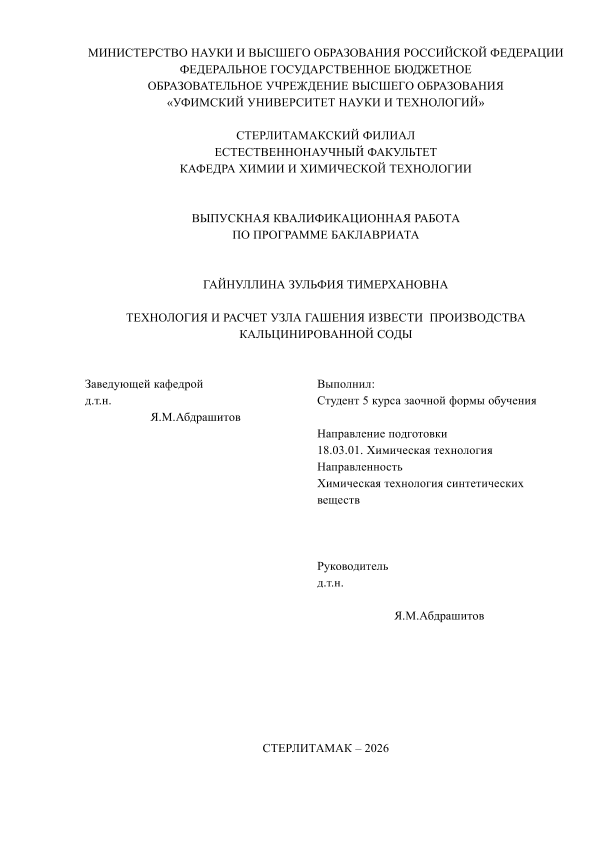 Химическая технология; бакалавриат; ВКР; кальцинированная сода