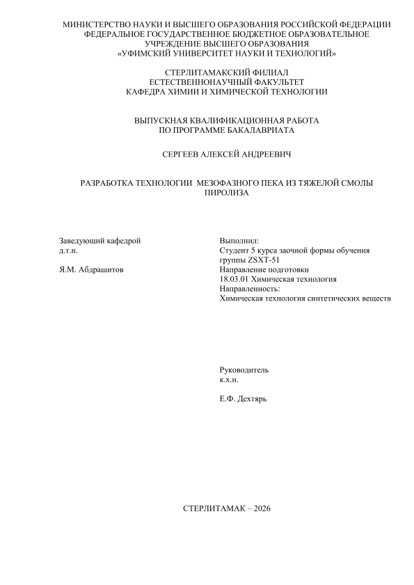 Химическая технология; бакалавриат; ВКР; мезофазный пек