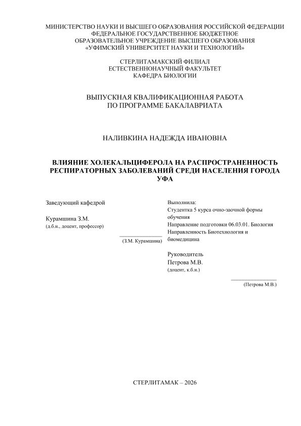 Биология; бакалавриат; ВКР; респираторные заболевания; Уфа