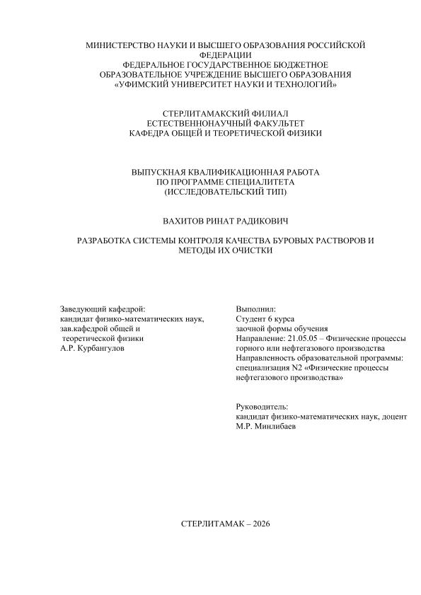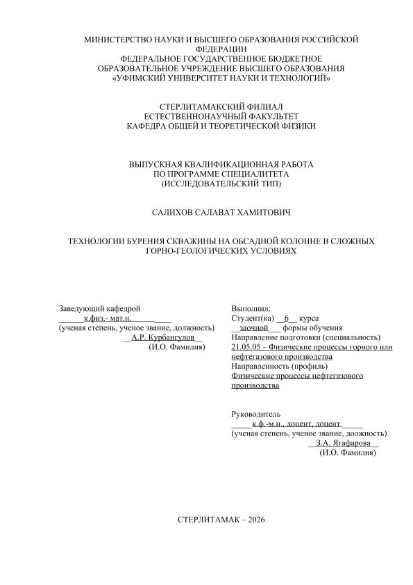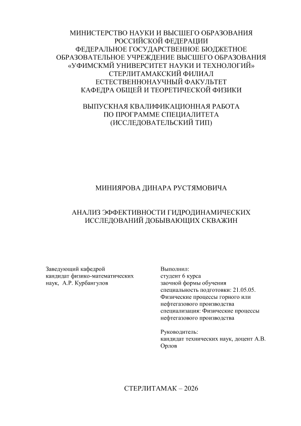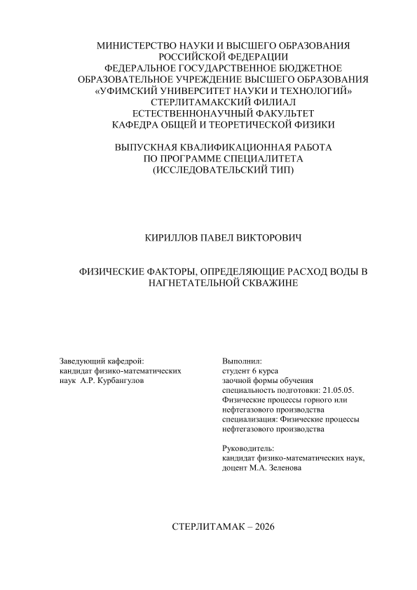 Физика; специалитет; ВКР; гидроразрыв пласта