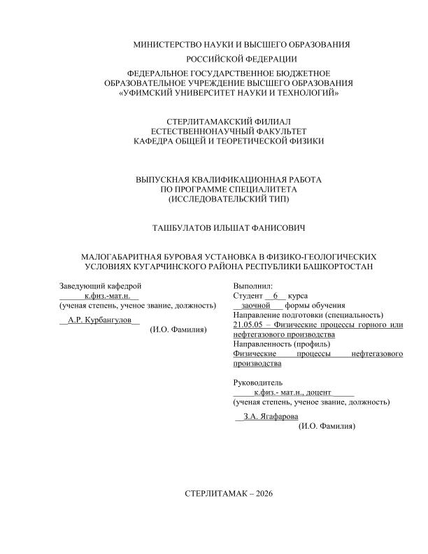 Физика; специалитет; ВКР; малогабаритная буровая установка