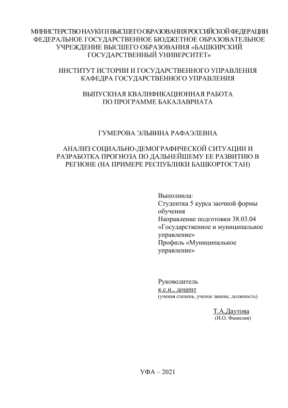 Экономика — Управление экономикой; ВКР; бакалавриат; анализ социально-демографической ситуации; проект «Демография»; нормативно-правовые основы