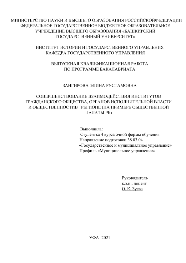 Экономика — Управление экономикой; ВКР; бакалавриат; органы исполнительной власти; институты гражданского общества; деятельность Общественной палаты РБ; Республика Башкортостан