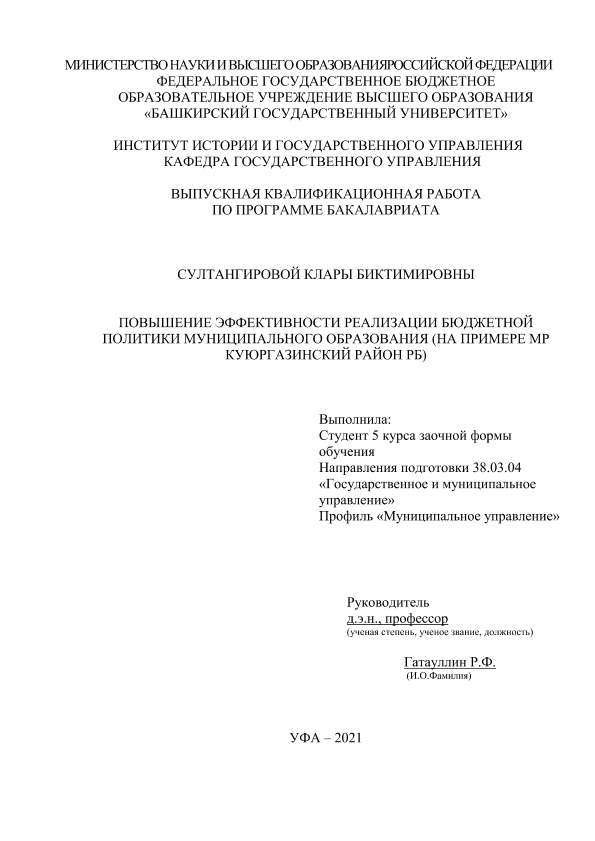 Экономика — Управление экономикой; ВКР; бакалавриат; муниципальные образования; бюджетная политика; нормативно-правовые основы; показатели эффективности