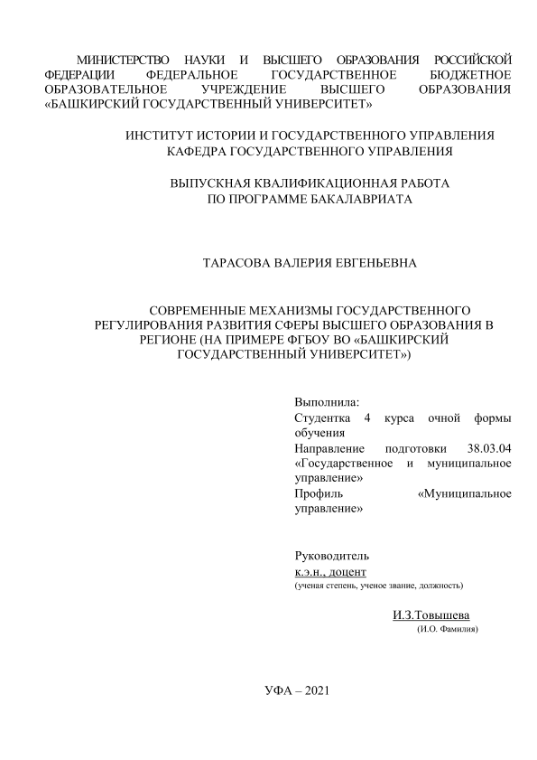Экономика — Управление экономикой; ВКР; бакалавриат; высшее образование; регионы; вузы; государственное регулирование; государственная политика; нормативно-правовые основы
