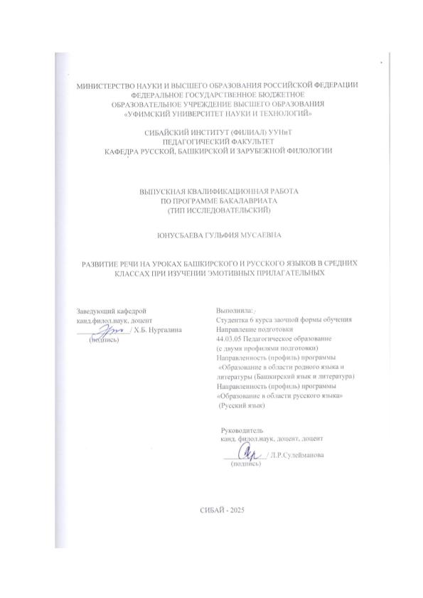 Башкирский язык; бакалавриат; ВКР; развитие речи; изучение; прилагательные