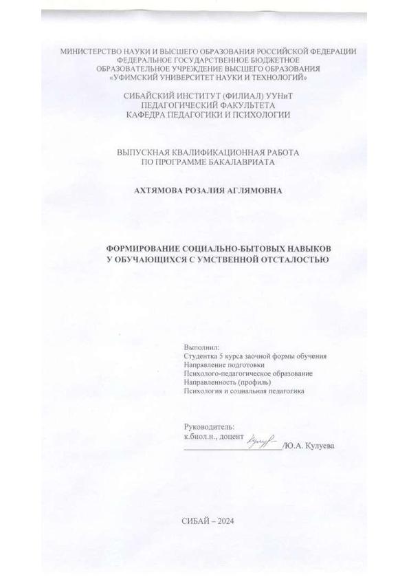 Психология и социальная педагогика; бакалавриат; ВКР; обучение; умственное отсталось; воспитание