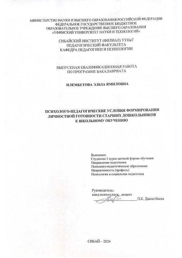 Психология и социальная педагогика; бакалавриат; ВКР; личность; обучение; воспитание