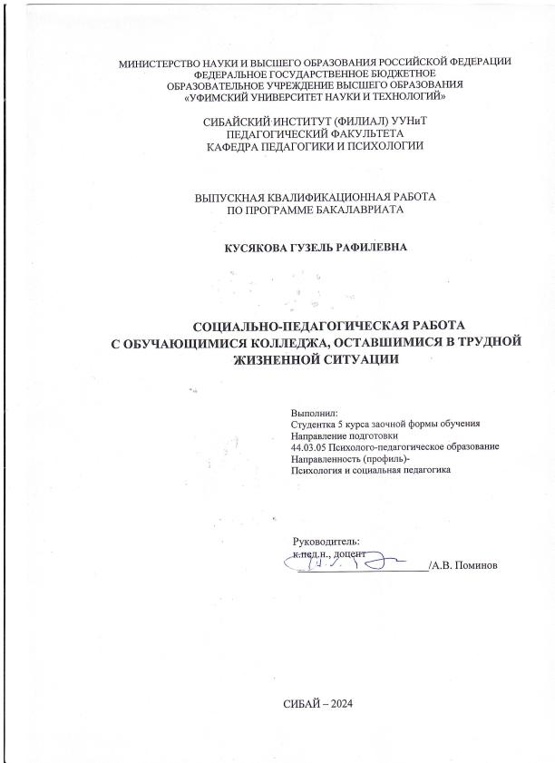 Психология и социальная педагогика; бакалавриат; ВКР; обучающийся; воспитание; развитие
