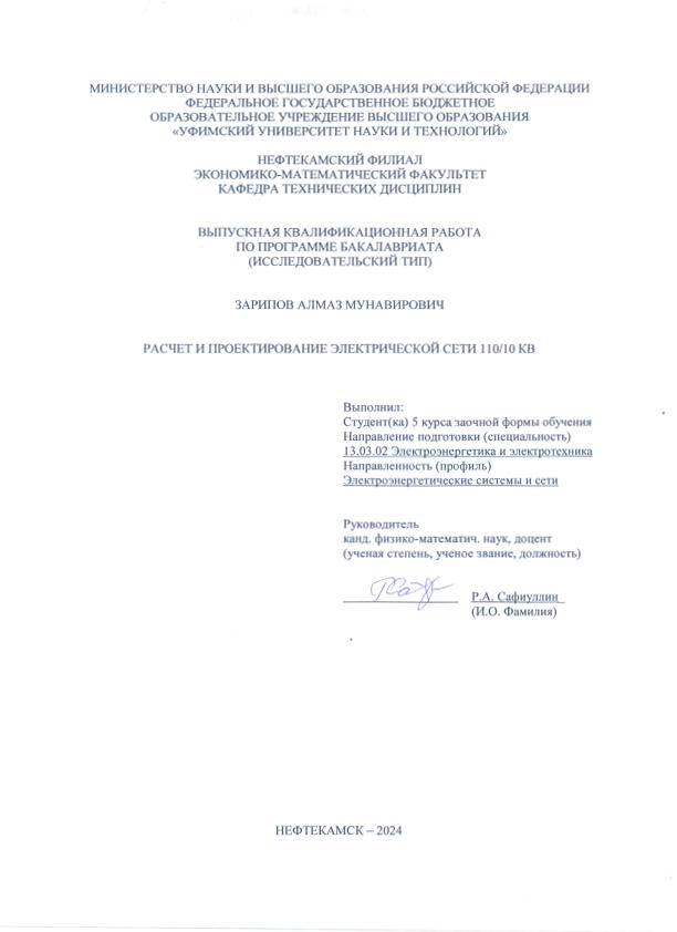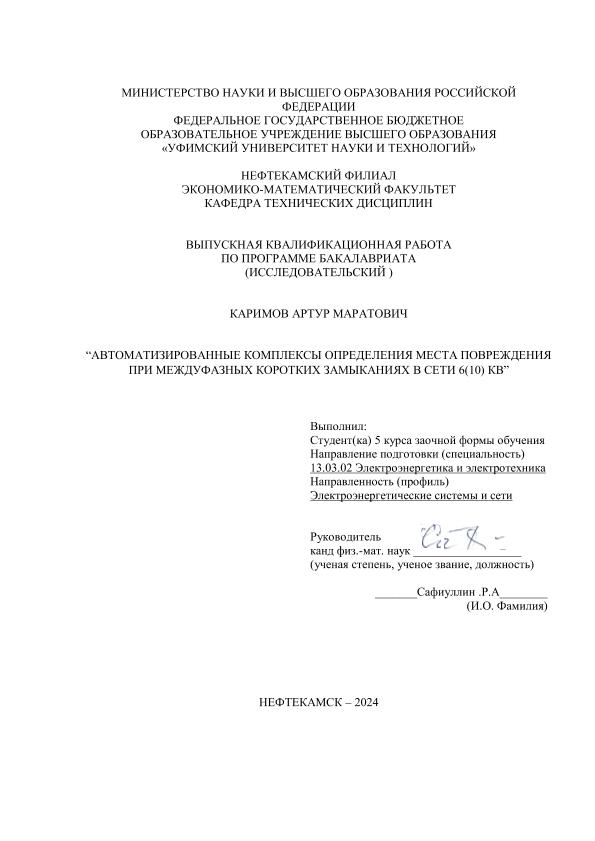 Энергетика — Электрические системы в целом; бакалавриат; ВКР; автоматизированный комплекс; короткое замыкание; электрическая сеть