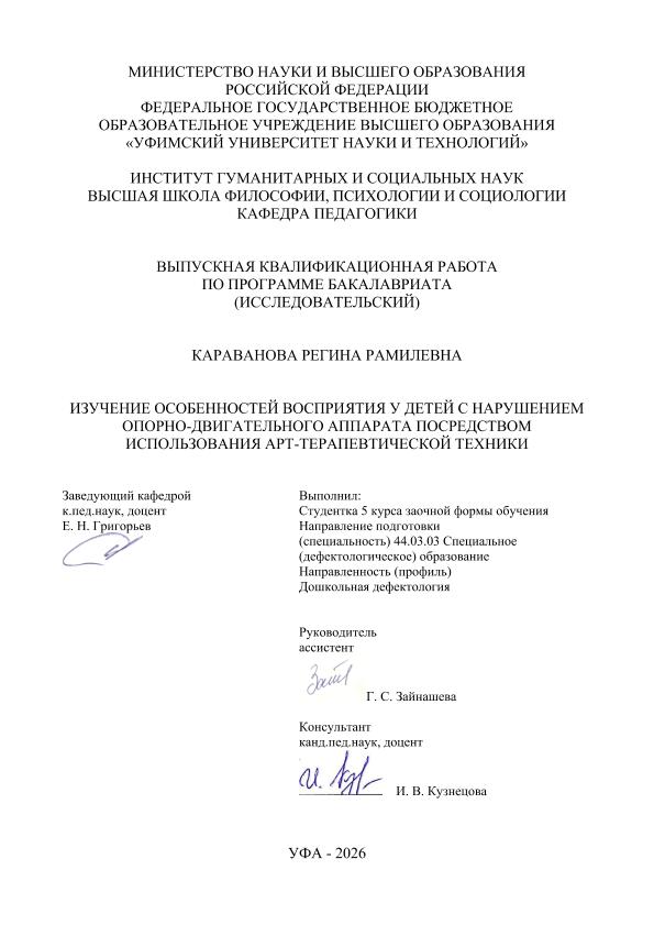 ВКР; бакалавриат; дошкольники; нарушения опорно-двигательного аппарата; развитие восприятия; арт-терапия