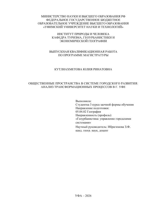 ВКР; магистратура; городская среда; общественное пространство; трансформационные процессы; пешеходные пространства; пешеходные маршруты