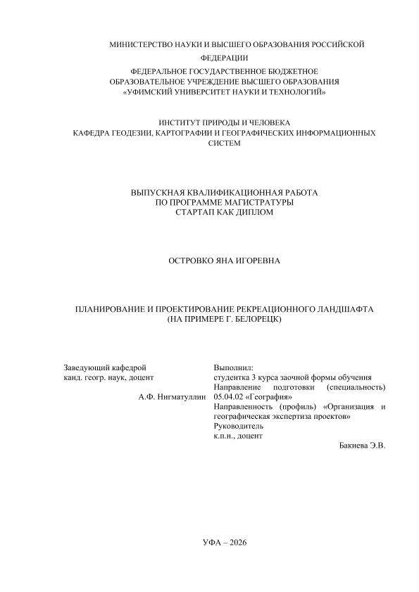 рекреационного ландшафта; озеленение городской среды; г. Белорецк; подбор растительности; разработка стартапа ландшафтной компании; бизнес-план компании