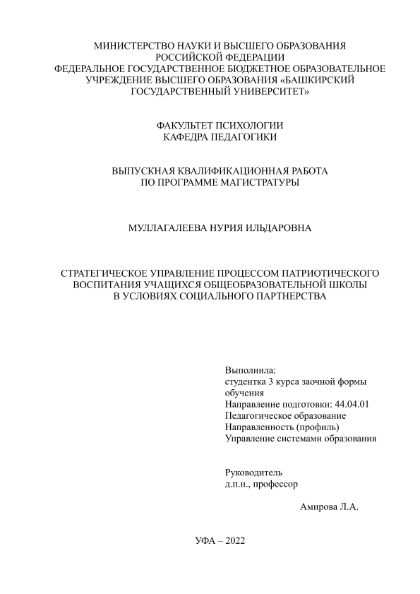 Образование. Педагогика — Организация образования; ВКР; магистратура; общеобразовательные школы; патриотическое воспитание; социальное партнерство; стратегическое управление; семья