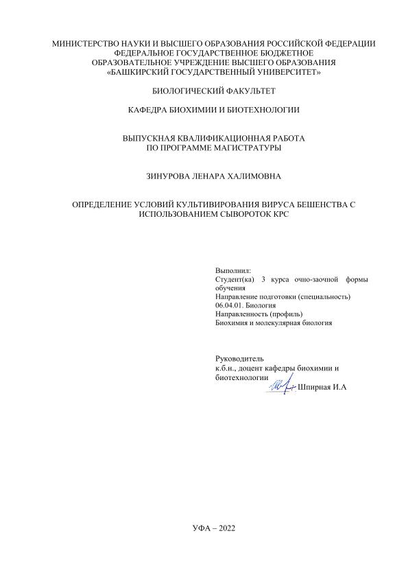 Биология — Молекулярная биология; ВКР; магистратура; вирус бешенства; вакцины против бешенства; сыворотки КРС