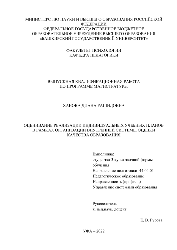Образование. Педагогика — Организация образования; ВКР; магистратура; индивидуальные учебные планы; качество образования; школы