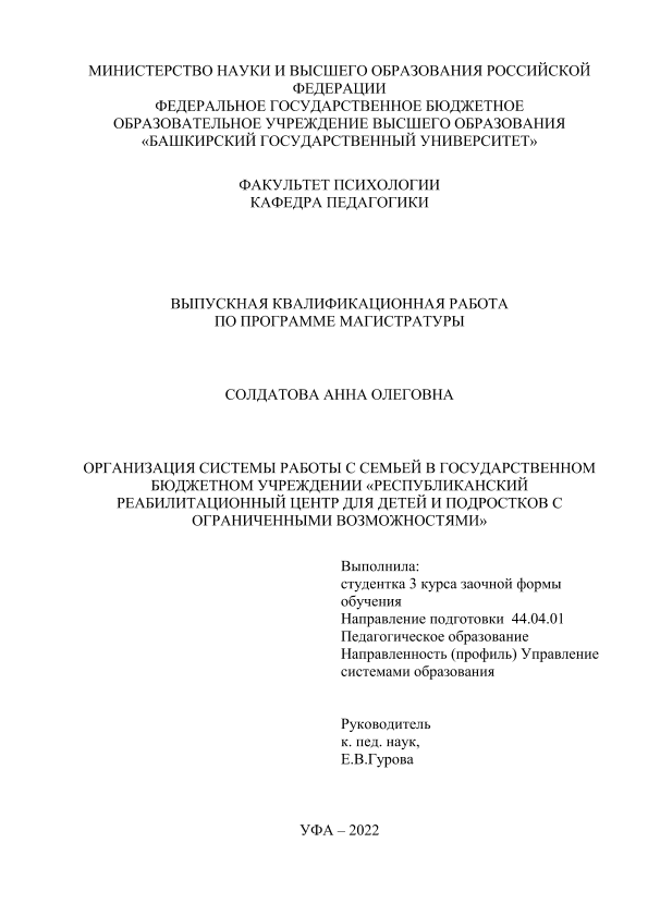 Образование. Педагогика — Организация образования; ВКР; магистратура; дети с ОВЗ; семьи; психологические проблемы; социальная работа; социальная поддержка; реабилитационные центры