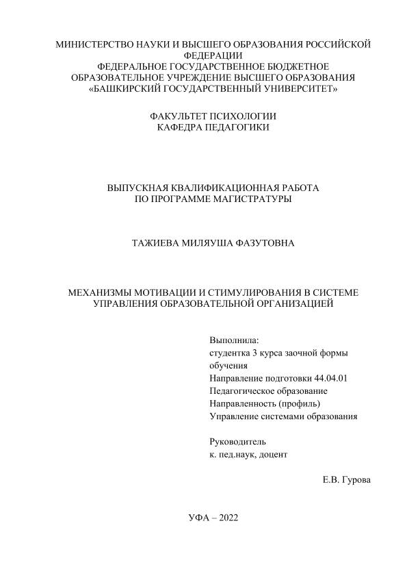 Образование. Педагогика — Организация образования; ВКР; магистратура; образовательные организации; мотивация; стимулирование; педагоги; профессиональное развитие; эффективный контракт