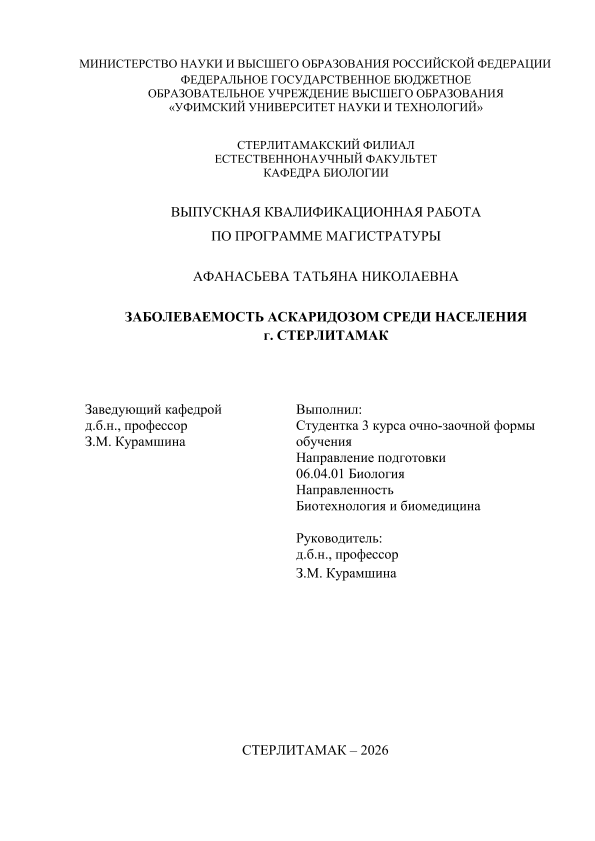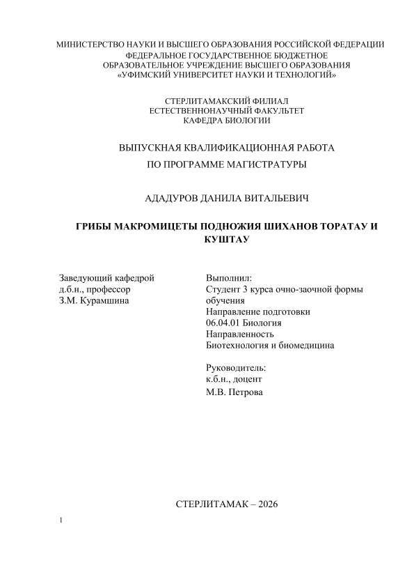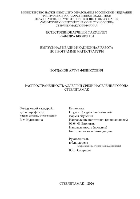 Уфимский университет науки и технологий. Стерлитамакский филиал. Естественнонаучный факультет. кафедра биологии