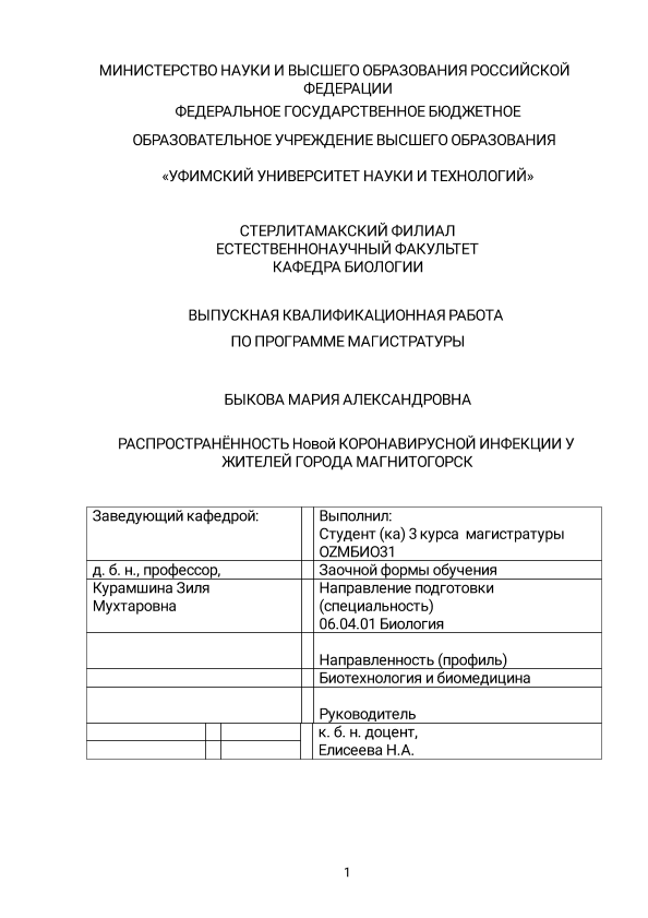 Биология; магистратура; ВКР; коронавирусная инфекция