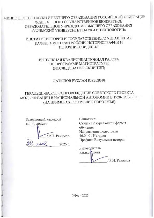 ВКР; магистратура; советская геральдика; республики Поволжья; особенности формирования герба БАССР; геральдический образ республик