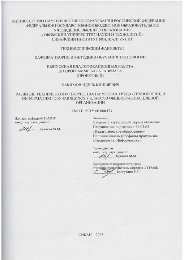 Технология. Информатика; бакалавриат; ВКР; творчества; развитие; труда