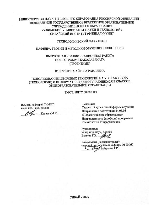 Технология. Информатика; бакалавриат; ВКР; испльзование; цифравой; информатики
