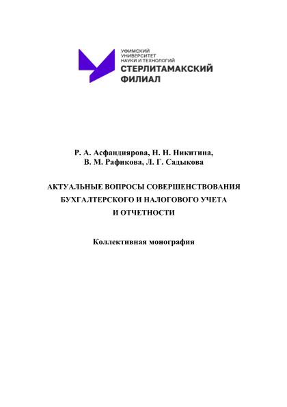 Асфандиярова Р. А.; Никитина Н. Н.; Рафикова В. М.; Садыкова Л. Г.