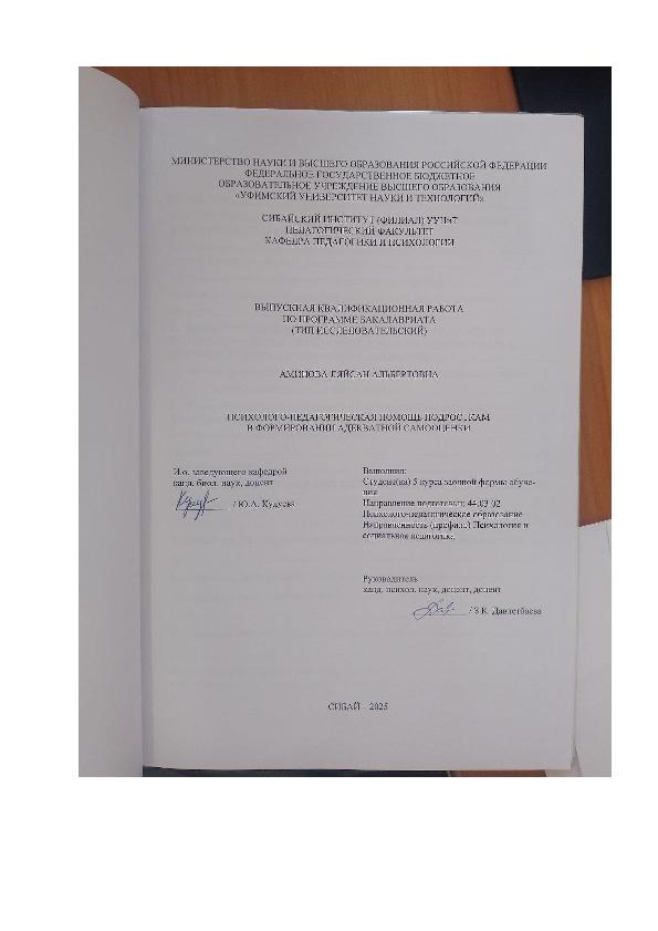 Психология; бакалавриат; ВКР; формирования; помпщь; самооценка