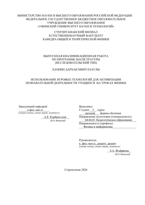 Педагогика; магистратура; ВКР; уроки физики; игровые технологии