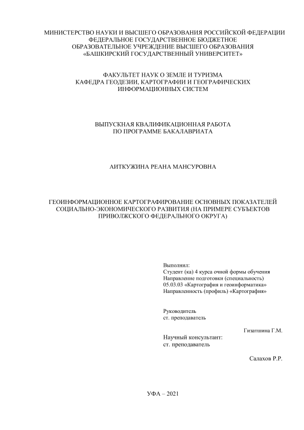 Геодезия — Картография; ВКР; бакалавриат; социально-экономическое развитие; Приволжский федеральный округ; геоинформационное картографирование