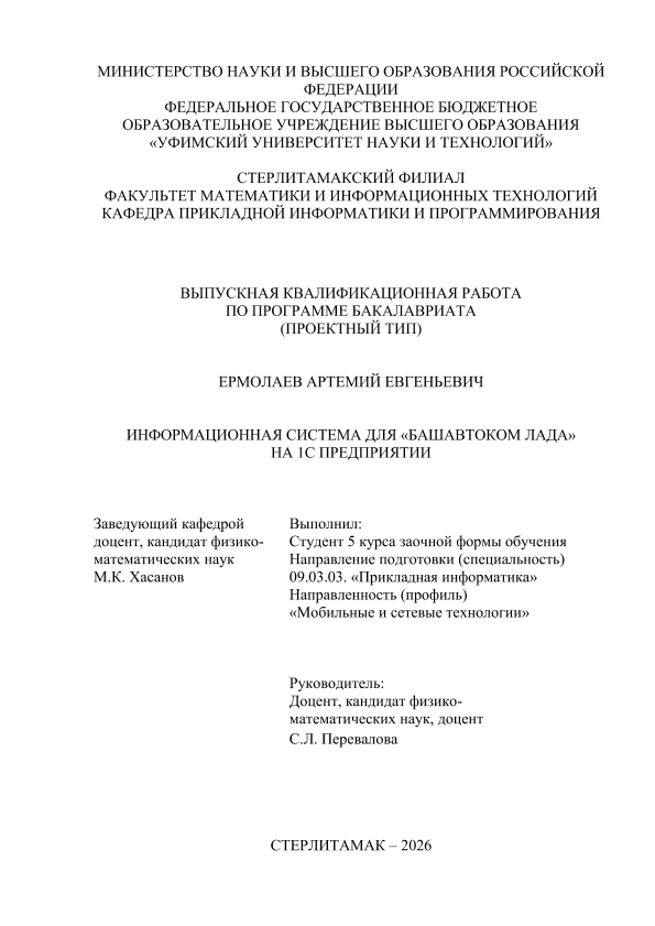 бакалавриат; ВКР проектного типа; информационная система; 1 С предприятие