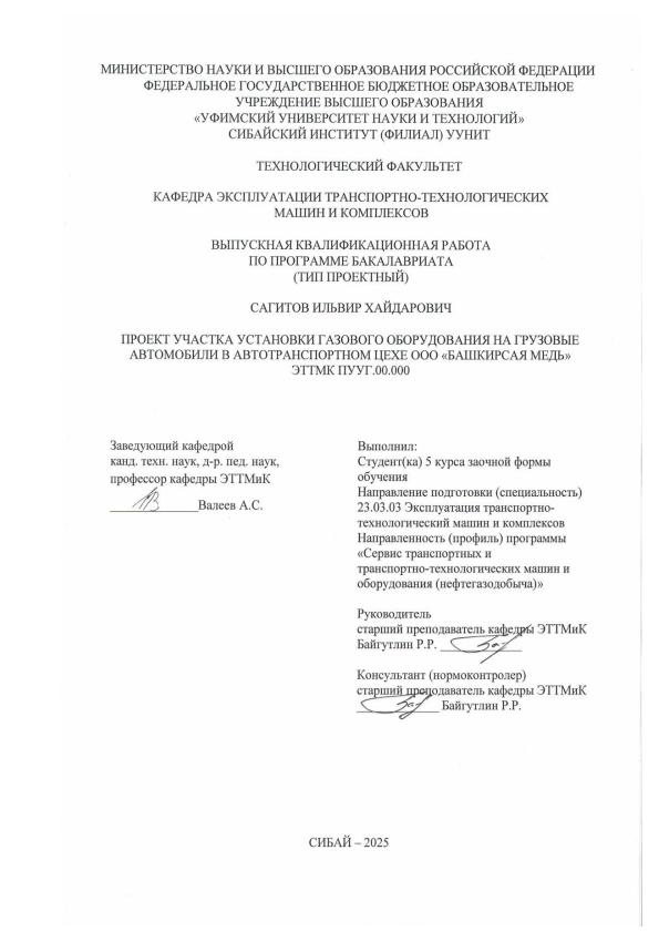 Эксплуатация транспортно-технологических машин и комплексов; бакалавриат; ВКР; установка; проект; газового оборудования
