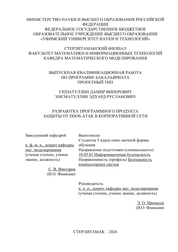 Вычислительная техника; бакалавриат; ВКР проектного типа; инофрмационная безопасность; DDOS-атаки