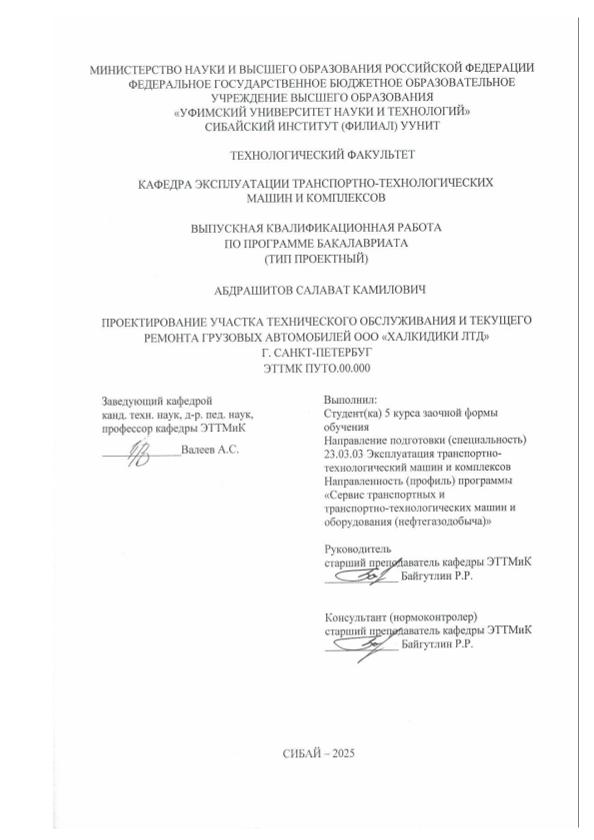 Эксплуатация транспортно-технологических машин и комплексов; бакалавриат; ВКР; обслуживания; грузовых; проектирование