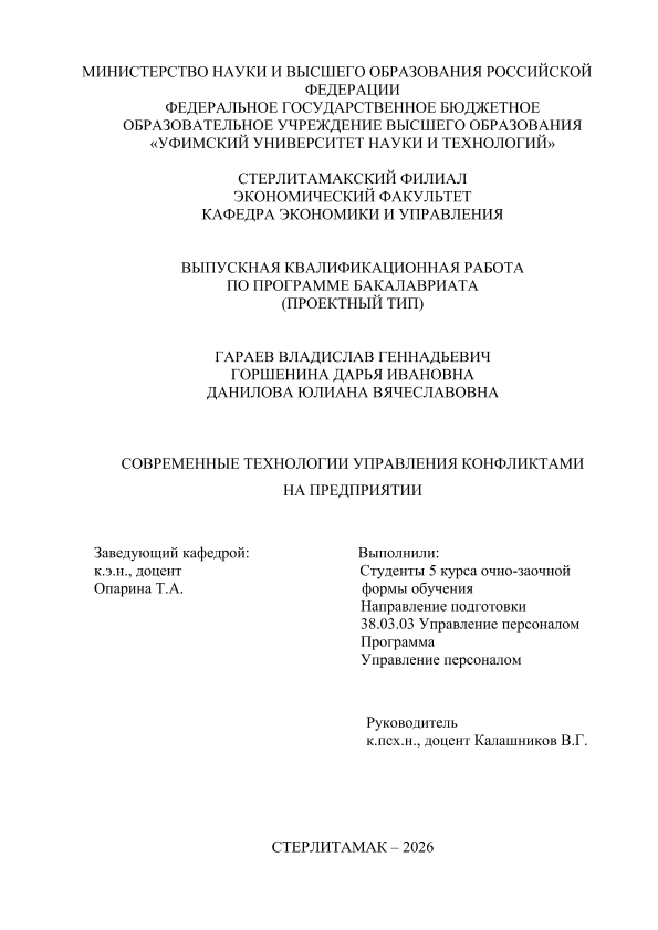 Управление персоналом; бакалавриат; ВКР проектного типа; управление конфликтами