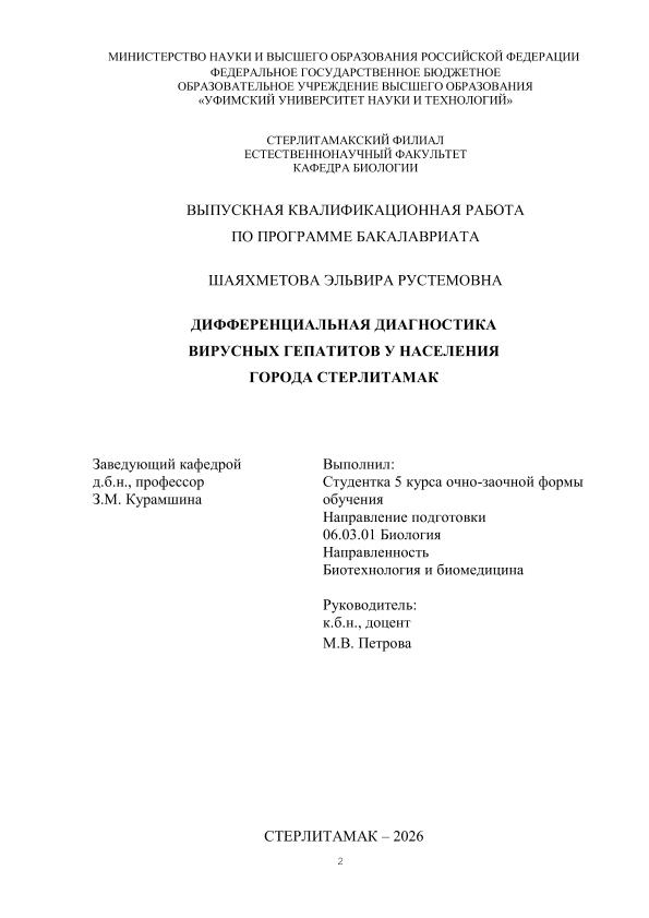 Биология; бакалавриат; ВКР; вирусный гепатит