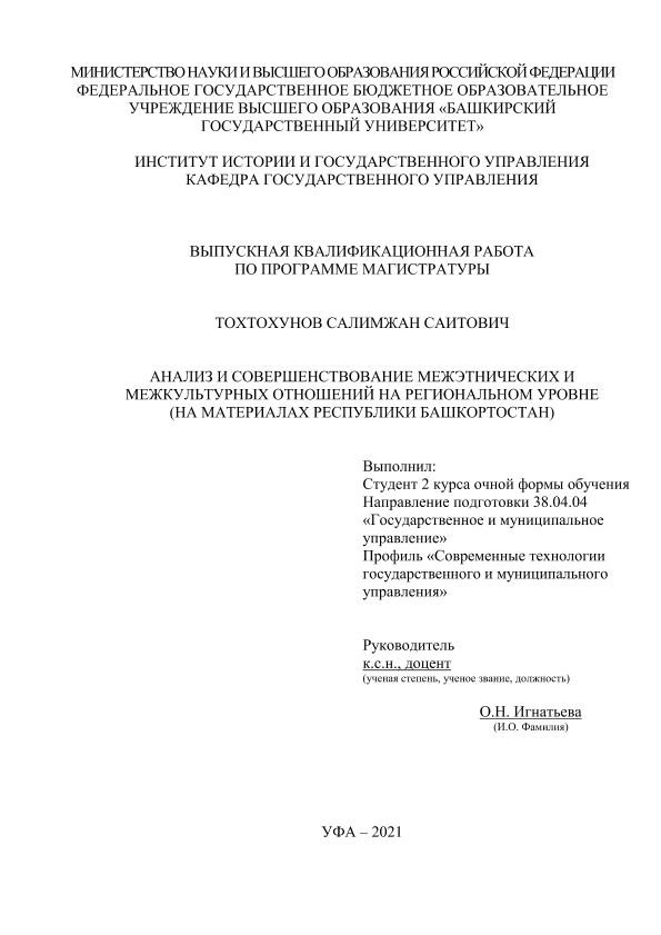 Экономика — Управление экономикой; ВКР; магистратура; межэтнические отношения; межкультурные отношения; регионы; государственное регулирование; нормативно-правовые основы