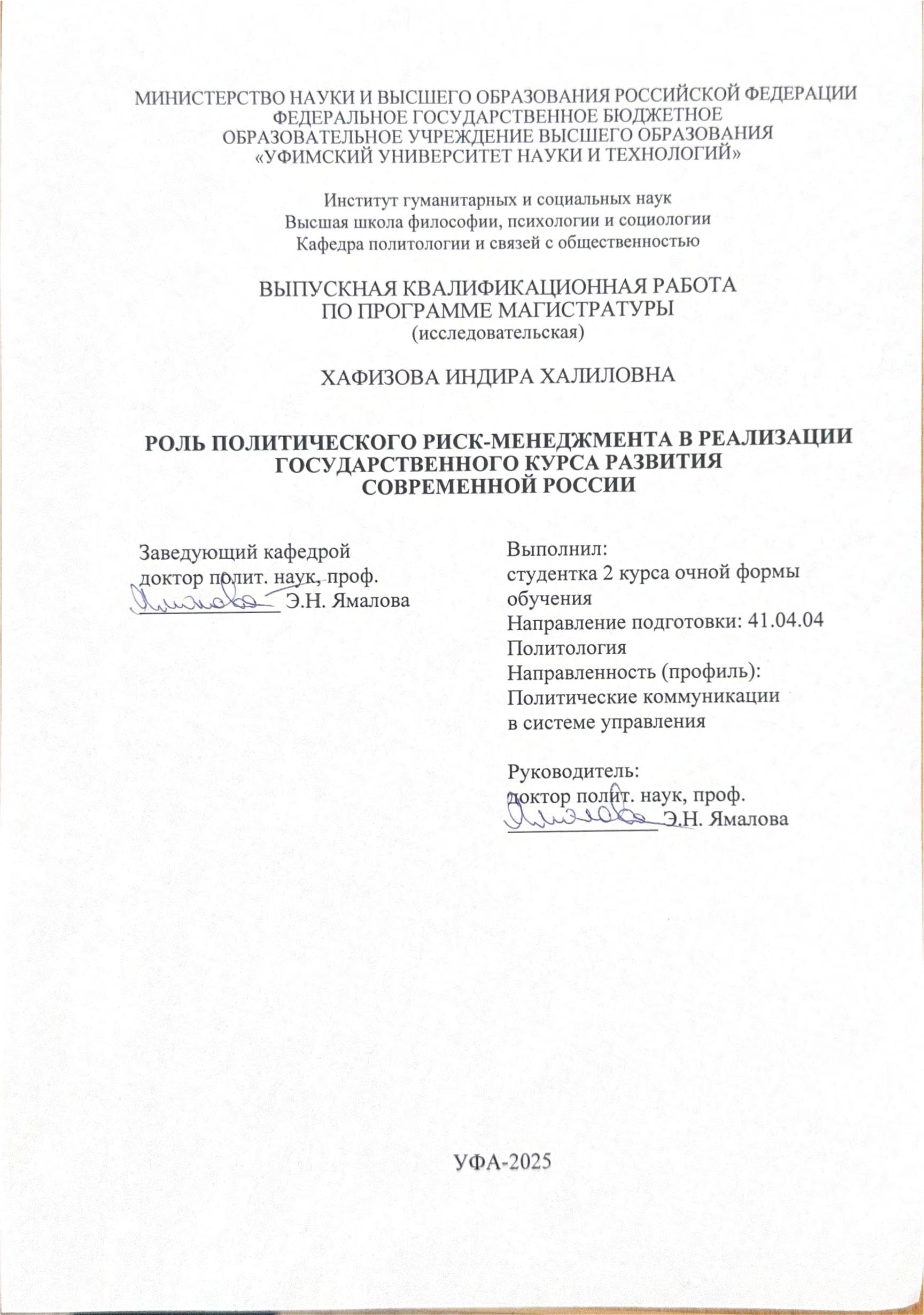 Subjects: магистратура; ВКР; политический риск-менеджмент; государственная политика; внешнеполитические стратегии России; Башкортостан