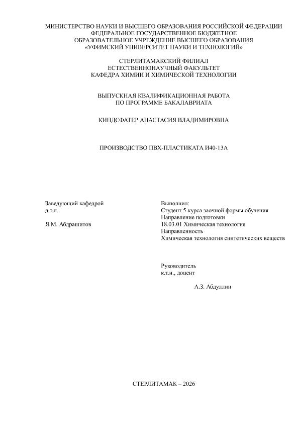 Химическая технология; бакалавриат; ВКР; ПВХ - пластикат И40-13А