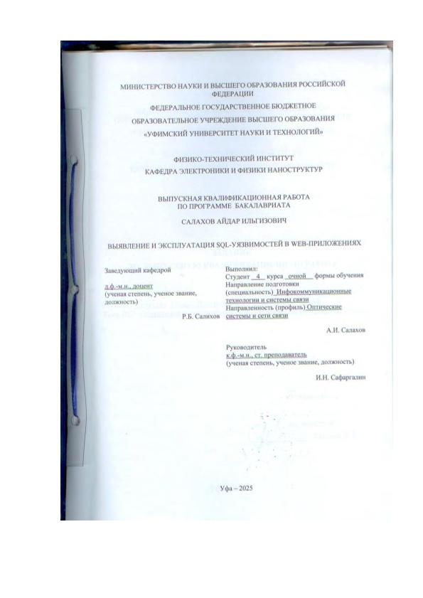 бакалавриат; ВКР; SQL-инъекция; веб-технологии; системы управления баз данных (СУБД); методы выявления уязвимости; предотвращение SQL_инъекции